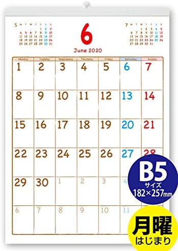 月曜始まりカレンダー 3色表示 前後月 六曜あり 壁掛けカレンダー