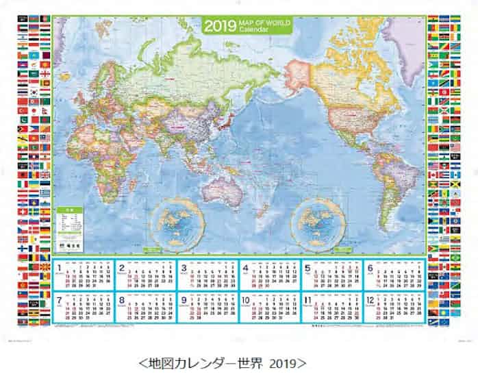 昭文社 地図カレンダー世界 2019 と 地図カレンダー日本 2019 を